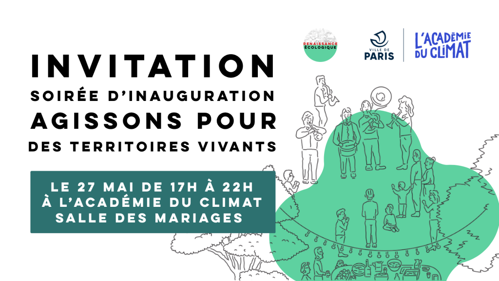 Nous avons le plaisir de vous inviter à la soirée d’inauguration de notre nouveau cycle d’ateliers « Agissons pour des Territoires Vivants » qui se tiendra le 27 mai de 17h à 22h à l’Académie du Climat à Paris.