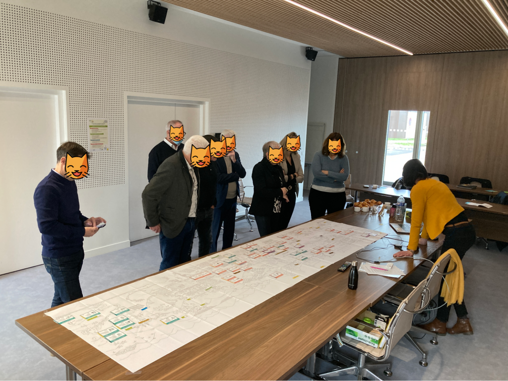 Chaque atelier démarrait par un quiz façon “Qui veut gagner des millions” pour comprendre les enjeux propres au territoire et les vulnérabilités. Ensuite, les élu.e.s participaient à une série de petites activités ludiques pour appréhender la systémie à travers le dessin de la Renaissance écologique et les 24 chantiers. Enfin, les élu.e.s positionnaient sur le dessin des cartes Enjeux Climat Air Energie, puis les cartes Leviers d’actions prévus dans le PCAET pour y répondre.